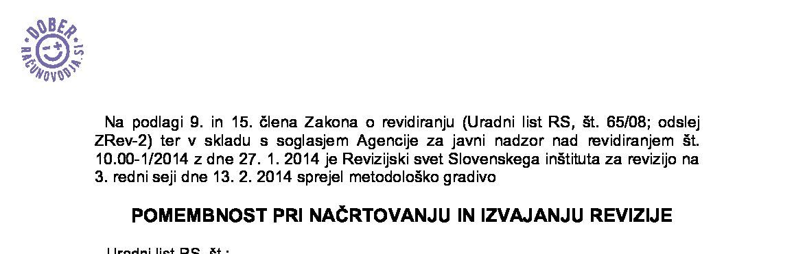 Metodološko gradivo (še) ni bilo objavljeno v Uradnem listu RS.