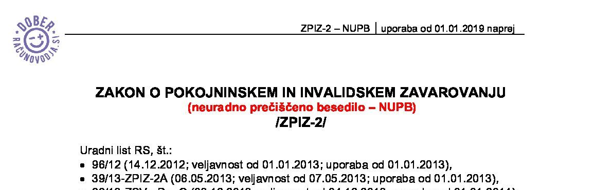 | ZAKON O POKOJNINSKEM IN INVALIDSKEM ZAVAROVANJU (ZPIZ-2 - neuradno prečiščeno besedilo) | 01.01.2026 | [!] | 21.11.2025 | |