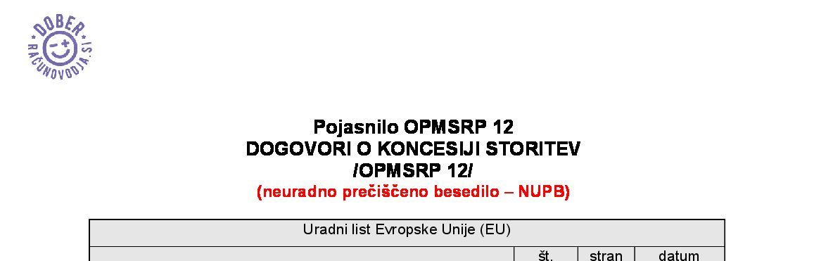 Podjetja začnejo uporabljati NUPB OPMSRP-12 najpozneje z začetkom prvega poslovnega leta, ki se začne 1. januarja 2020 ali po tem datumu.