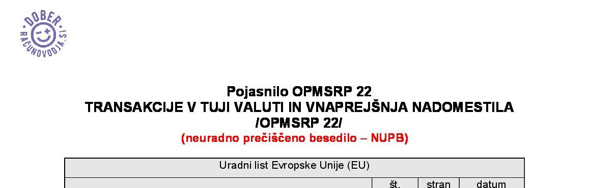 | OPMSRP 22 - Transakcije v tuji valuti in vnaprejšnja nadomestila | 16.10.2023 | [!] | 28.11.2023 | |