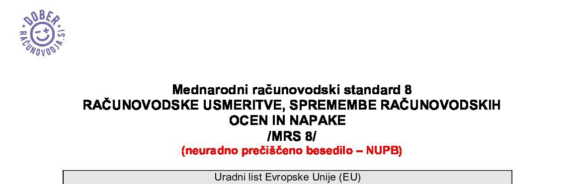 Podjetja začnejo uporabljati NUPB MRS-8 najpozneje z začetkom prvega poslovnega leta, ki se začne 1. januarja 2018 ali po tem datumu.