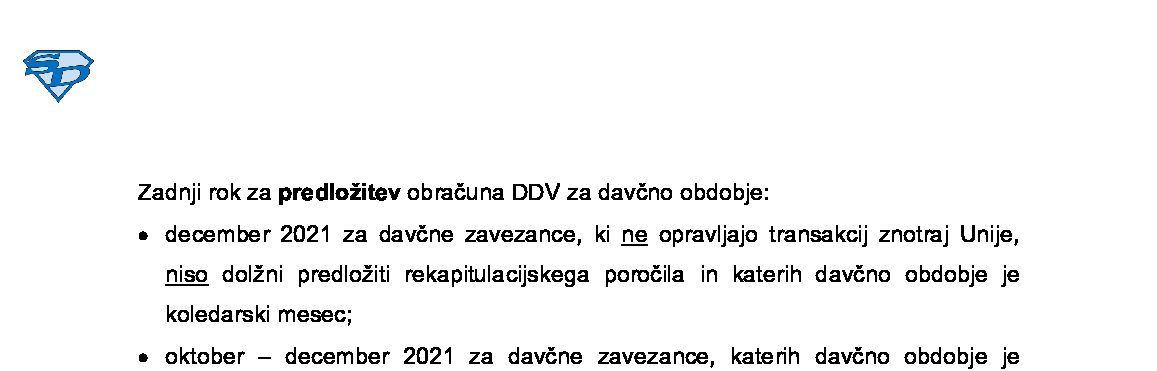 | Predložitev obračuna DDV-O ter evidence obračunanega DDV in odbitka DDV | 10.12.2025 |