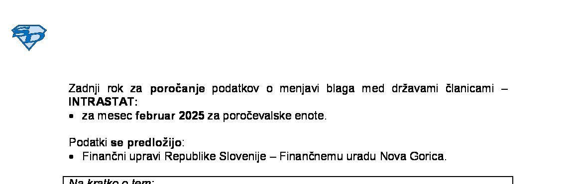Poročanje podatkov o menjavi blaga med državami članicami EU - INTRASTAT 22.01.2025