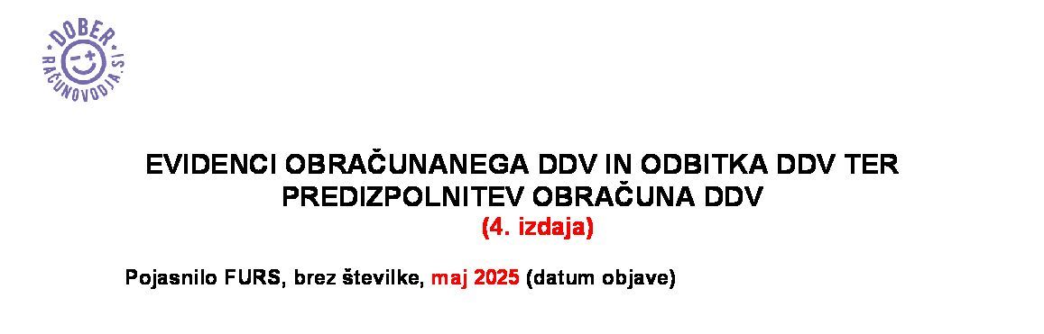 | EVIDENCI OBRAČUNANEGA DDV IN ODBITKA DDV TER PREDIZPOLNITEV OBRAČUNA DDV (podrobnejši opis, 18. izdaja) | 01.12.2025 | 01.12.2025 |