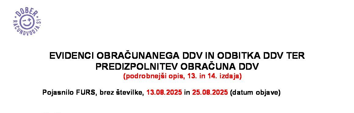 | EVIDENCI OBRAČUNANEGA DDV IN ODBITKA DDV TER PREDIZPOLNITEV OBRAČUNA DDV (podrobnejši opis, 18. izdaja) | 01.12.2025 | 01.12.2025 |
