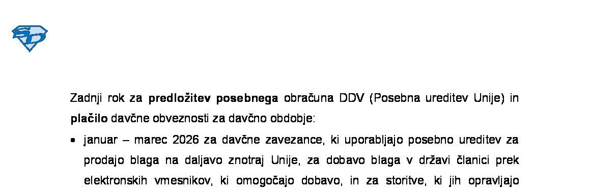 Predložitev posebnega obračuna DDV in plačevanje davčne obveznosti (posebna ureditev Unije) 17.12.2025