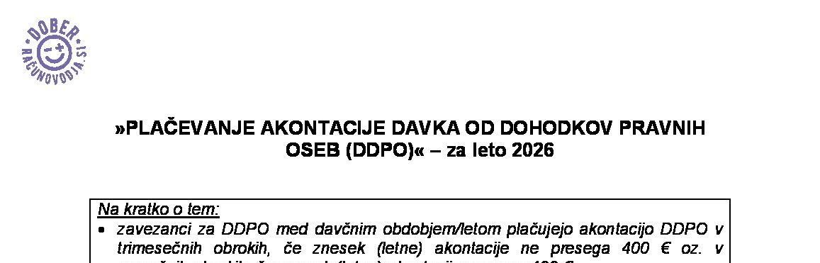 SPREMEMBA AKONTACIJE DAVKA OD DOHODKOV PRAVNIH OSEB MED DAVČNIM LETOM - za leto 2026 19.01.2026