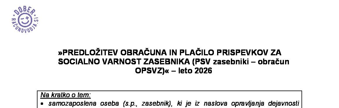 PREDLOŽITEV OBRAČUNA IN PLAČILO PRISPEVKOV ZA SOCIALNO VARNOST ZA DRUŽBENIKE/DELNIČARJE GOSPODARSKIH DRUŽB IN USTANOVITELJE ZAVODOV/ZADRUG, KI SO POSLOVODNE OSEBE IN NISO ZAVAROVANE NA DRUGI PODLAGI (PSV 040 družbeniki – obračun OPSVL) – leto 2026 21.01.2026