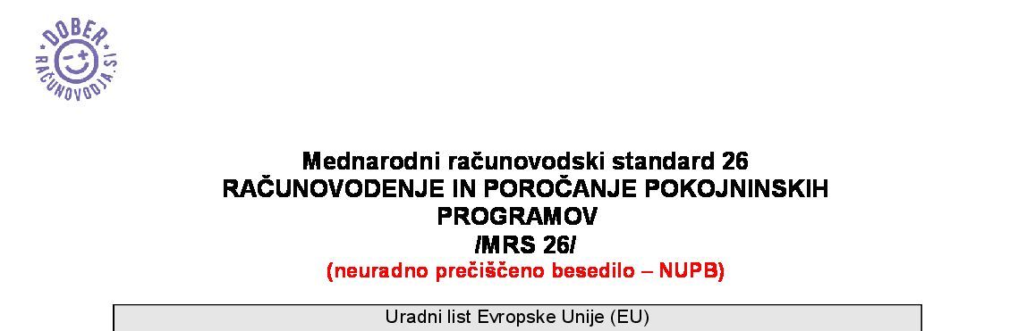 | 26. MRS 26 - Računovodenje in poročanje pokojninskih programov (NUPB - neuradno prečiščeno besedilo) | 01.01.2027 | [!] | 10.03.2026 | |