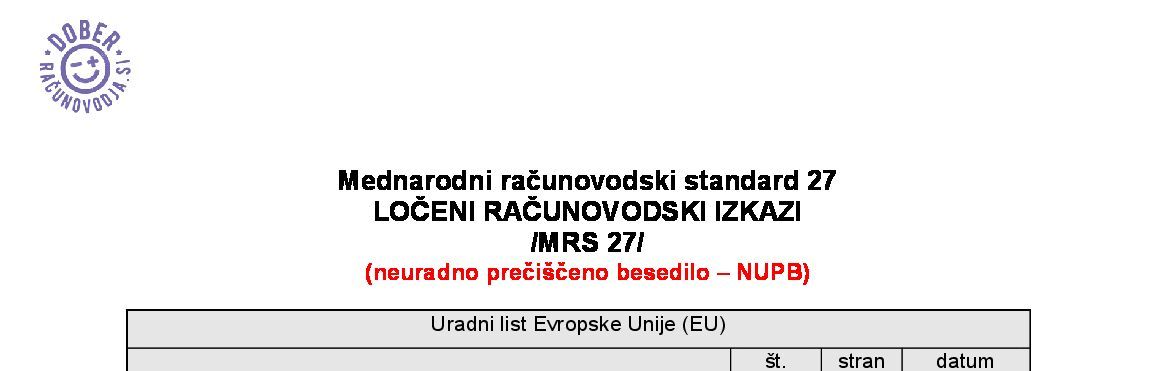| 29. MRS 29 - Računovodsko poročanje v hiperinflacijskih gospodarstvih (NUPB - neuradno prečiščeno besedilo) | 01.01.2027 | [!] | 13.03.2026 | |