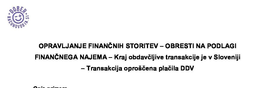 OPRAVLJANJE FINANČNIH STORITEV - OBRESTI ZA DANO POSOJILO – Kraj obdavčljive transakcije je v Sloveniji – Transakcija oproščena plačila DDV 15.11.2018