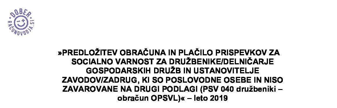 PREDLOŽITEV OBRAČUNA IN PLAČILO PRISPEVKOV ZA SOCIALNO VARNOST ZA DRUŽBENIKE/DELNIČARJE GOSPODARSKIH DRUŽB IN USTANOVITELJE ZAVODOV/ZADRUG, KI SO POSLOVODNE OSEBE IN NISO ZAVAROVANE NA DRUGI PODLAGI (PSV 040 družbeniki – obračun OPSVL) – leto 2025 (januar - junij 2025) 13.01.2025
