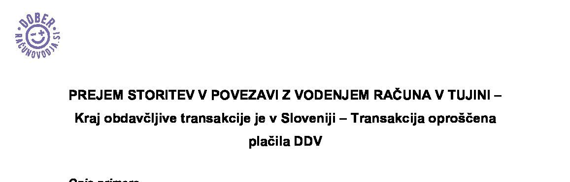 PREJEM STORITEV ZAVAROVANJA OPREME OD DAVČNEGA ZAVEZANCA IZ DRUGE DRŽAVE ČLANICE – Kraj obdavčljive transakcije je v Sloveniji – Transakcija oproščena plačila DDV 26.05.2020