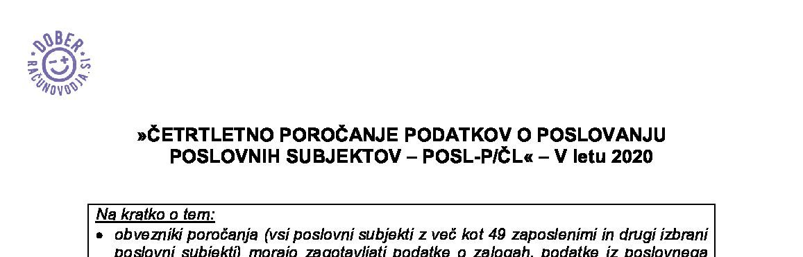 ČETRTLETNO POROČANJE PODATKOV O POSLOVANJU POSLOVNIH SUBJEKTOV - POSL-P/ČL - V letu 2025 10.01.2025