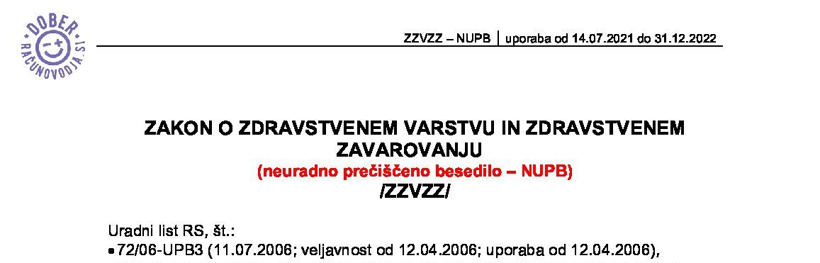 ZAKON O ZDRAVSTVENEM VARSTVU IN ZDRAVSTVENEM ZAVAROVANJU (ZZVZZ - neuradno prečiščeno besedilo) 01.03.2022 [!] 31.03.2022 07.02.2022
