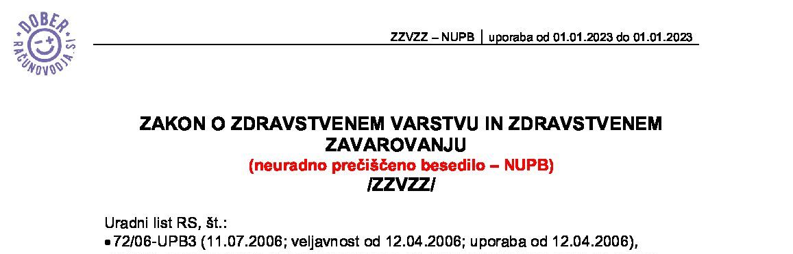 ZAKON O ZDRAVSTVENEM VARSTVU IN ZDRAVSTVENEM ZAVAROVANJU (ZZVZZ - neuradno prečiščeno besedilo) 08.11.2022 [!] 31.12.2023 16.11.2022