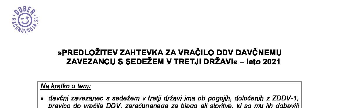 PREDLOŽITEV ZAHTEVKA ZA VRAČILO DDV DAVČNEMU ZAVEZANCU S SEDEŽEM V TRETJI DRŽAVI - leto 2024 27.01.2025