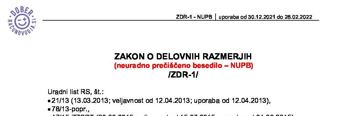 ZAKON O DELOVNIH RAZMERJIH (ZDR-1 - neuradno prečiščeno besedilo) 08.11.2022 [!] 15.11.2023 15.11.2022