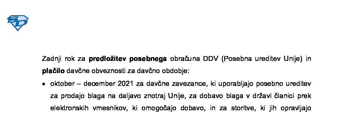 Predložitev posebnega obračuna DDV in plačevanje davčne obveznosti (posebna ureditev Unije) 17.12.2025
