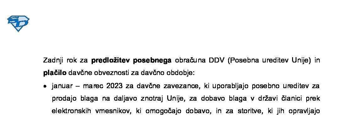 Predložitev posebnega obračuna DDV in plačevanje davčne obveznosti (posebna ureditev Unije) 17.12.2025