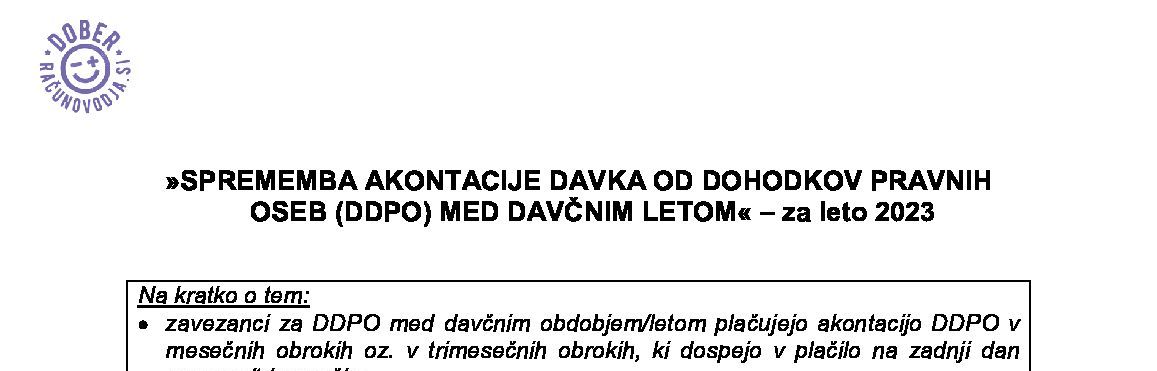 SPREMEMBA AKONTACIJE DAVKA OD DOHODKOV PRAVNIH OSEB MED DAVČNIM LETOM - za leto 2025 05.12.2024