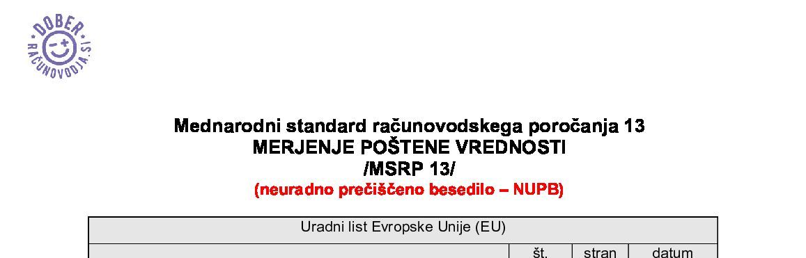 | 01. MSRP 1 - Prva uporaba Mednarodnih standardov računovodskega poročanja (NUPB - neuradno prečiščeno besedilo) | 01.01.2026 | [!] | 14.07.2025 | |
