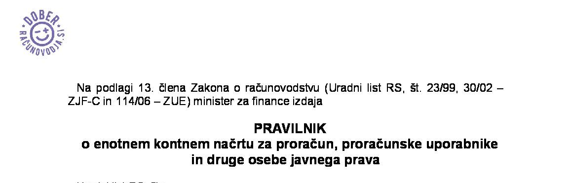 Pravilnik o enotnem kontnem načrtu za proračun, proračunske uporabnike in druge osebe javnega prava (NUPB - neuradno prečiščeno besedilo) 08.07.2025 11.07.2025