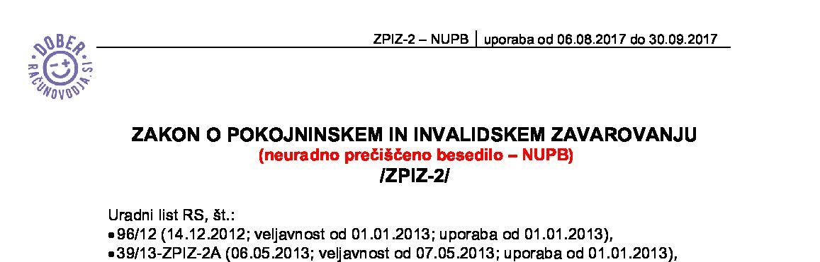 | ZAKON O POKOJNINSKEM IN INVALIDSKEM ZAVAROVANJU (ZPIZ-2- neuradno prečiščeno besedilo) | 03.08.2023 | 31.12.2023 | 17.08.2023 | |
