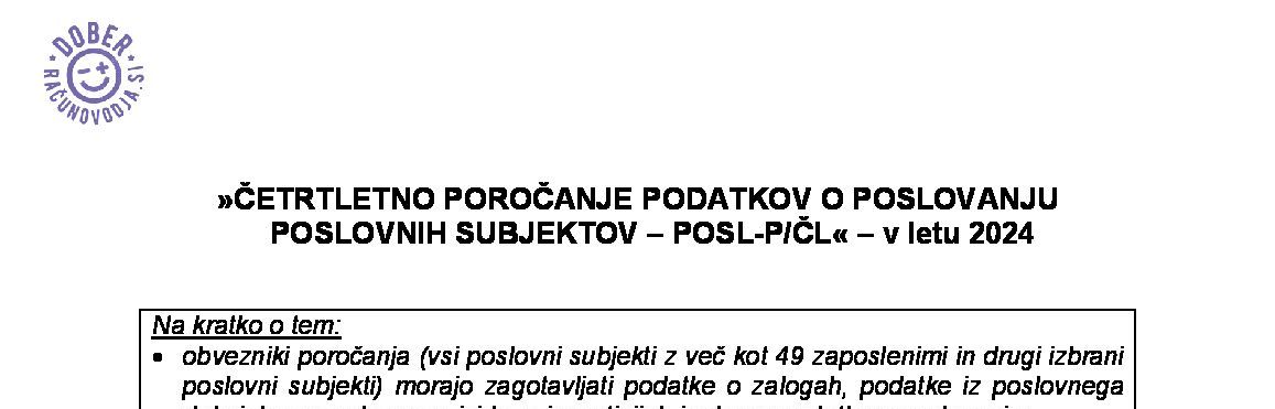 ČETRTLETNO POROČANJE PODATKOV O POSLOVANJU POSLOVNIH SUBJEKTOV - POSL-P/ČL - V letu 2025 10.01.2025