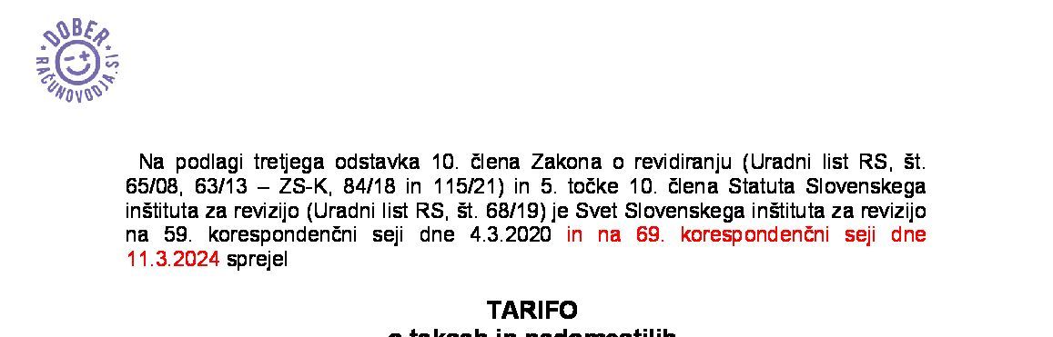 Tarifa o taksah in nadomestilih (NUPB - neuradno prečiščeno besedilo) 06.08.2025 11.08.2025