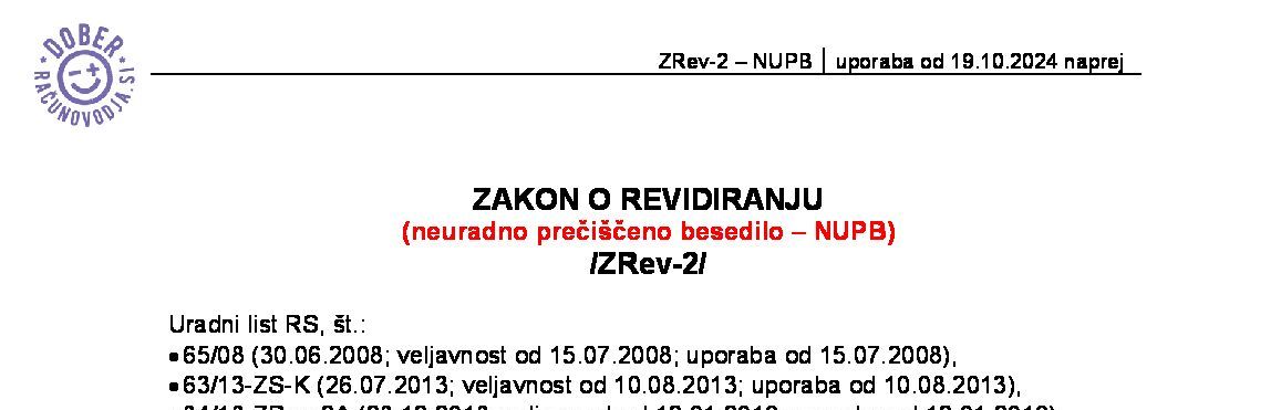 | ZAKON O REVIDIRANJU (ZRev-2 - neuradno prečiščeno besedilo) | 31.07.2021 | [!] | 08.10.2024 | 03.08.2021 |