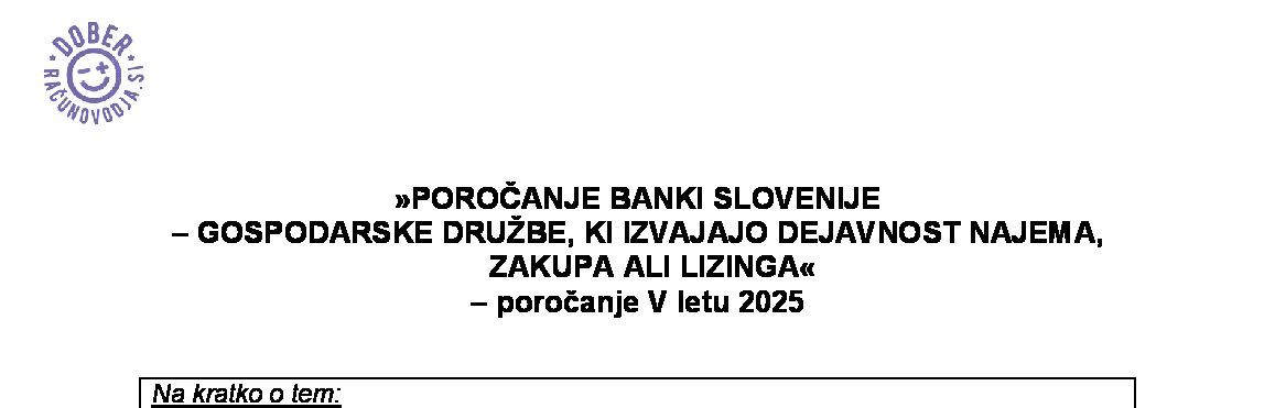 POROČANJE BANKI SLOVENIJE - REVIDIRANO POROČILO GOSPODARSKIH DRUŽB, KI IZVAJAJO DEJAVNOST NAJEMA, ZAKUPA ALI LIZINGA - poročanje za poslovno leto 2024 09.12.2024