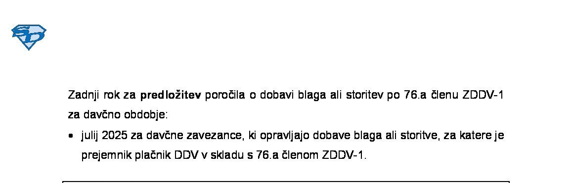 Predložitev poročila o skupni vrednosti dobav blaga na daljavo in opravljenih (TBE) storitvah iz 30.f člena ZDDV-1 16.12.2025