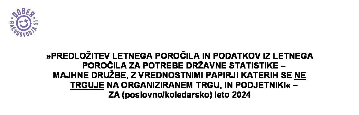 PREDLOŽITEV LETNEGA POROČILA TER KONSOLIDIRANEGA LETNEGA POROČILA IN PODATKOV IZ LETNEGA POROČILA ZA POTREBE DRŽAVNE STATISTIKE – DRUŽBE, KI SO ZAVEZANE K REVIZIJI LETNIH POROČIL - ZA (poslovno/koledarsko) leto 2024 31.01.2025