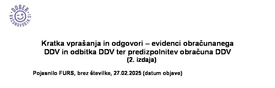 | Kratka vprašanja in odgovori – evidenci obračunanega DDV in odbitka DDV ter predizpolnitev obračuna DDV (16. izdaja) | 01.12.2025 | 02.12.2025 |