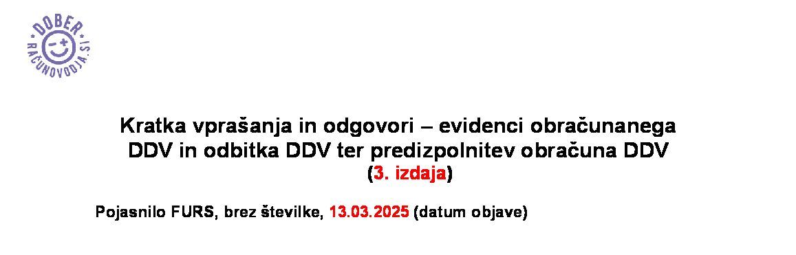| Kratka vprašanja in odgovori – evidenci obračunanega DDV in odbitka DDV ter predizpolnitev obračuna DDV (16. izdaja) | 01.12.2025 | 02.12.2025 |