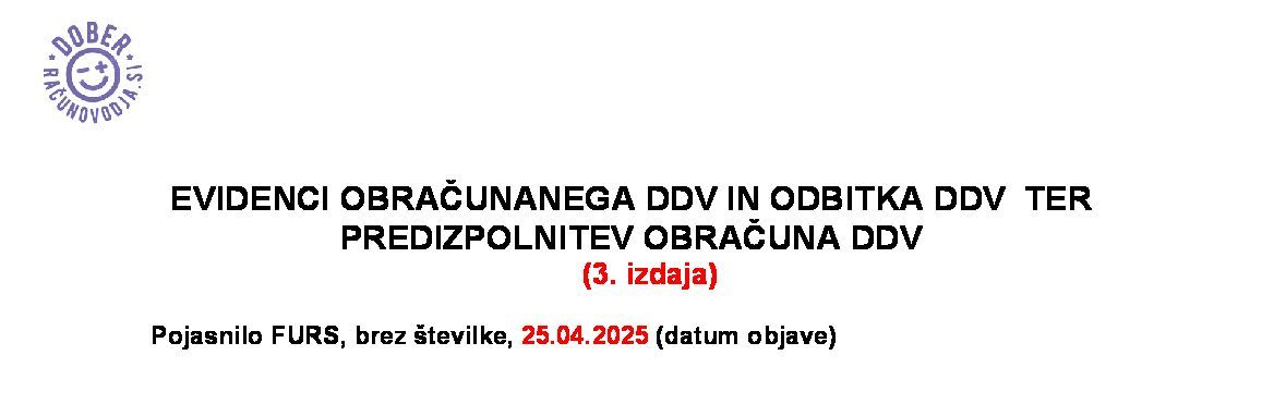 | EVIDENCI OBRAČUNANEGA DDV IN ODBITKA DDV TER PREDIZPOLNITEV OBRAČUNA DDV (podrobnejši opis, 18. izdaja) | 01.12.2025 | 01.12.2025 |