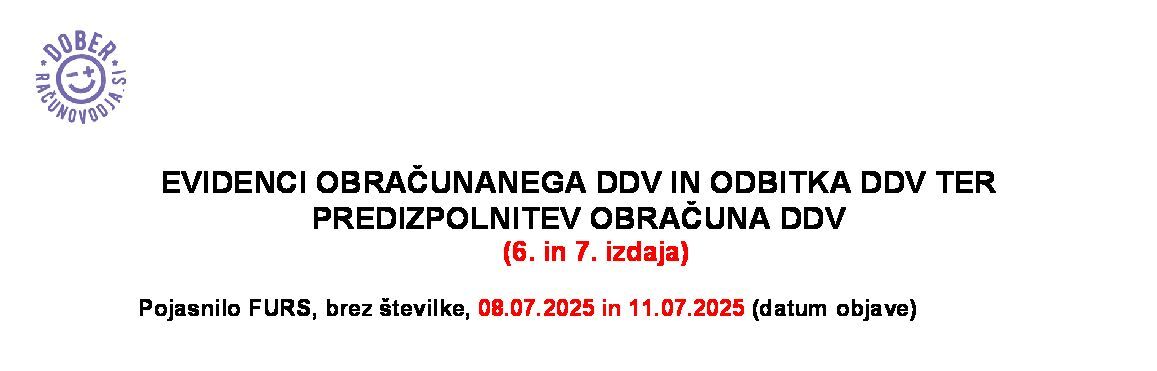 | EVIDENCI OBRAČUNANEGA DDV IN ODBITKA DDV TER PREDIZPOLNITEV OBRAČUNA DDV (podrobnejši opis, 18. izdaja) | 01.12.2025 | 01.12.2025 |