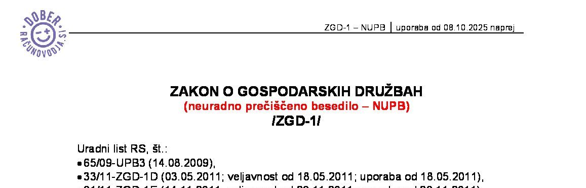 | ZAKON O GOSPODARSKIH DRUŽBAH (ZGD-1 - neuradno prečiščeno besedilo) | 18.12.2024 | [!] | 07.10.2025 | 30.12.2024 |