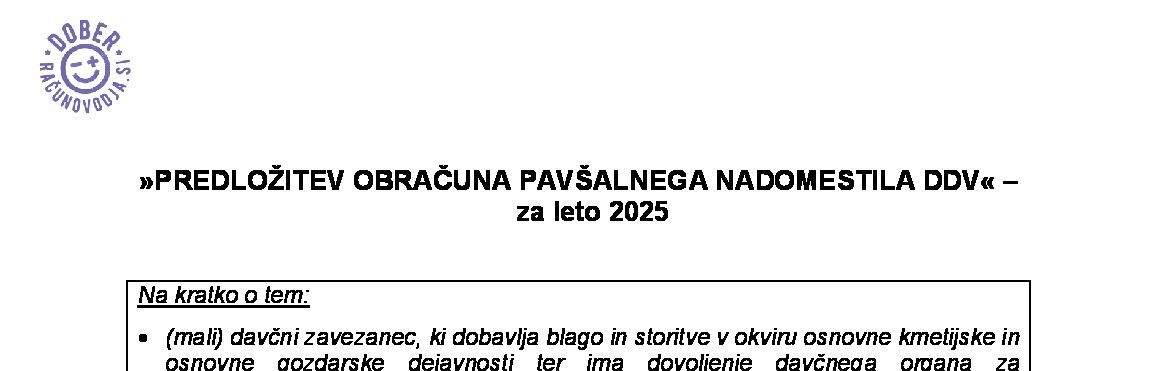 | PREDLOŽITEV EVIDENCI OBRAČUNANEGA DDV IN ODBITKA DDV – leto 2026 | 11.12.2025 |