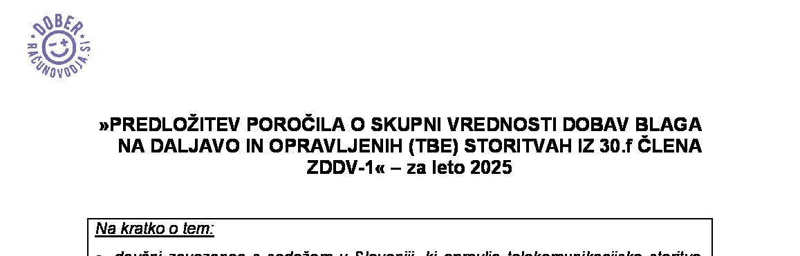 PREDLOŽITEV POROČILA O PRODAJI BLAGA NA DALJAVO V DRUGE DRŽAVE ČLANICE – za leto 2025 16.12.2025