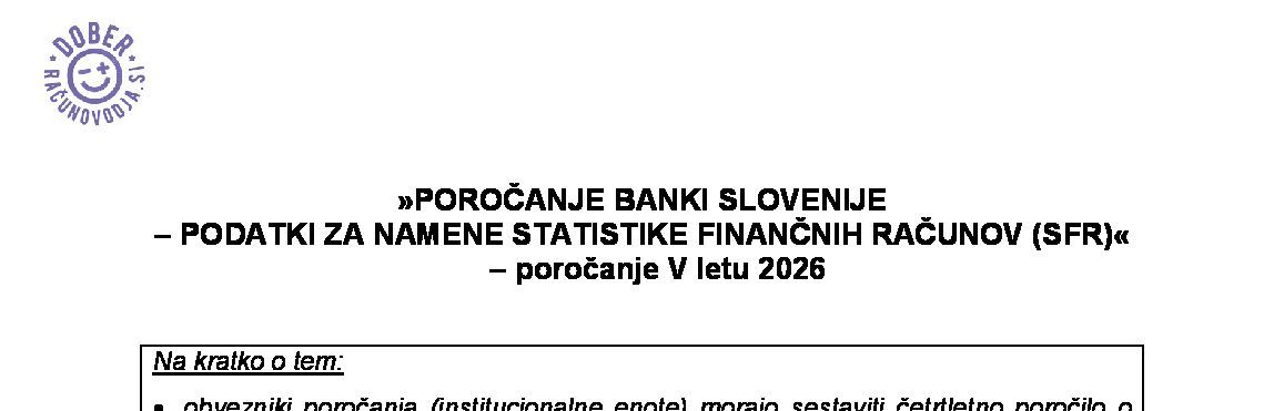POROČANJE BANKI SLOVENIJE - POROČILO O POSLIH Z VREDNOSTNIMI PAPIRJI (poročila SRN, SNR, SNN, TNR, TRN, TRR) - poročanje v letu 2026 13.01.2026