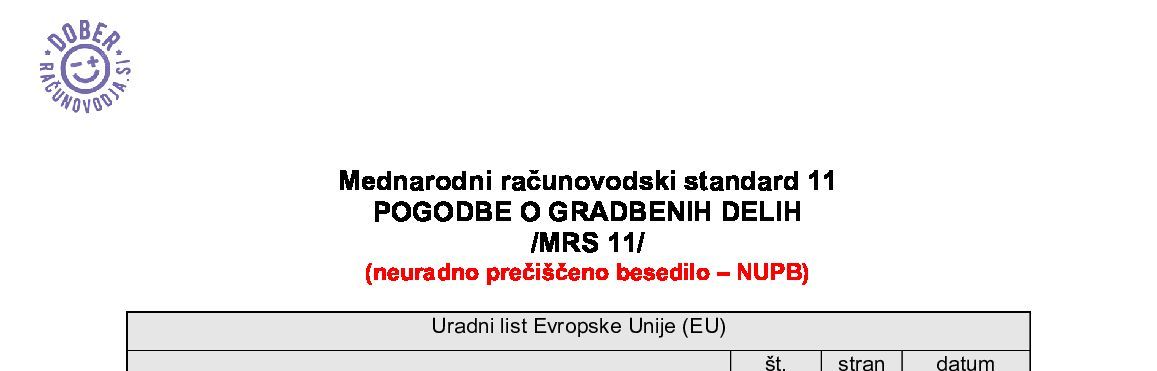 Skladno z Uredbo Komisije EU št. 2016/1905 z dne 22. septembra 2016 se po določbi C10 Priloge C MSRP-15 razveljavi MRS-11.