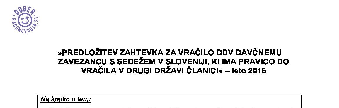 PREDLOŽITEV ZAHTEVKA ZA VRAČILO DDV DAVČNEMU ZAVEZANCU S SEDEŽEM V TRETJI DRŽAVI - leto 2024 27.01.2025